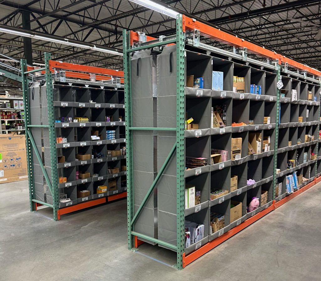 • Core Concept: A storage system made of durable, industrial-grade material that installs directly into your existing pallet rack bays. It works by creating customizable vertical columns of “pockets” where every inch is utilized.